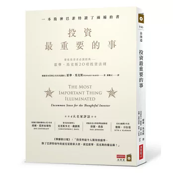 「投資書籍中,很少有像馬克斯《投資最重要的事》一樣樹立著高標準,這本書充滿機智、風趣,而且扣緊歷史觀點。如果你想避開投資陷阱,這是必讀的作品。」-約翰.伯格(John C. Bogle)先鋒集團(The Vanguard Group)創辦人暨執行長
