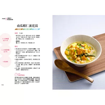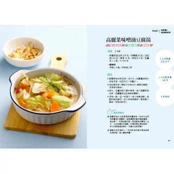 能兼具減脂、好吃、吃得飽的蔬菜湯,才能好心情減脂,因此本書結合食譜設計師與營養師的經驗,分享近70道蔬菜湯,這些蔬菜湯主要分成兩大類:「PART1低熱量!瘦身蔬菜湯」、「PART2加點肉!飽足蔬菜湯」。最重要的食材方面,營養師精選「低GI值、低熱量和高纖維」的材料烹調,並注重蛋白質的攝取,不僅能吃得飽,更能加速達到瘦身減脂的效果,同時延緩血糖上升速度。另外,每道湯料理都確實標明熱量、蔬菜量,加上各種食材的營養說明,讓新手們更容易挑選食用。以每人每天食用約300克蔬菜量計算,可食用1~2碗,只要在同餐或其他餐,選配適量其他類優質食物,便能兼顧減脂瘦身和身體營養。