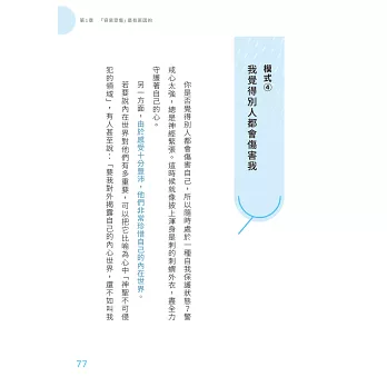高敏人等感受力強卻容易受傷的人普遍有自我苛責的傾向,覺得「我的心這麼脆弱,都是因為我不夠努力」。但是現在的我已經不會再這麼想了。