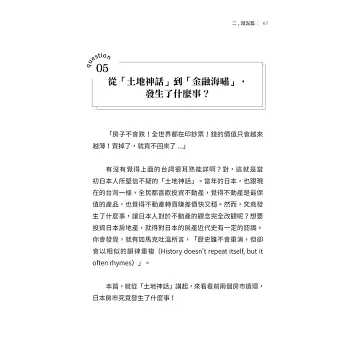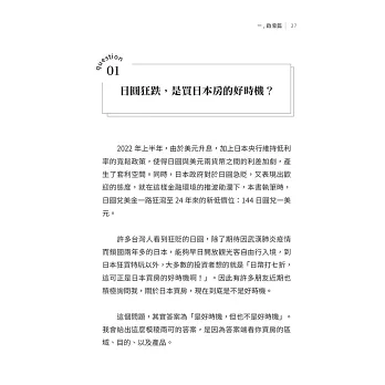 新書上架時,海外不動產的投資風氣正盛行。但是大多數人的目光是放在經濟正在興起的東南亞地區,每到週末各大飯店、會議廳都排滿了各國的投資說明會,論壇中業者大肆抨擊:日本老人化少子化,房產不會漲價、日本人不買房…等等偏頗的言論。而TiN桑就是在這樣的一個氛圍中逆流北上,隻身跑到了東京投資置產並考取了日本的「宅地建物取引士」證照(相當於台灣的不動產經紀人)。後來事實證明他獨到的眼光與果決的判斷讓他賺到了房產增值以及穩健的收益。畢竟日本買房不像台灣:台積電在哪設廠哪邊就會漲。