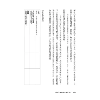 本書將幫你鍛鍊「目標設定與達成」、「情緒調節」、「保持專注」、「自我對話」、「提升自信」五大心理工具,當你在遇到各種挑戰時──像是著手做一件困難的事,或面臨想放棄的時候,這些工具能幫你克服自我懷疑、持續往目標邁進。