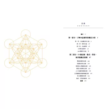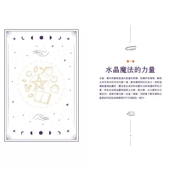 許多女巫相信世界上萬物有靈,認為自然中的一切都有靈性,水晶則像是這種生命能量中格外強勁的群集。就像你可能會和某些動物或者植物建立獨特的連結一樣,在你學習如何把水晶夥伴融入巫術實踐的時候,你就會和它建立獨特的關係。這本書也會告訴你如何選擇和採購水晶,以及如何讓它與你的巫術實踐融為一體。這本書有很大一部分在專門介紹辨別水晶的方法與其魔法特點,從而幫助你加深對水晶世界的理解。書的第二部分則會介紹一系列法術和儀式來讓你試驗,每一種法術都能用不同的方式喚起水晶的魔力。