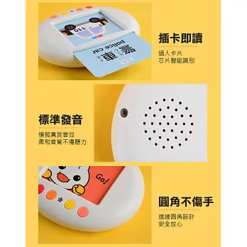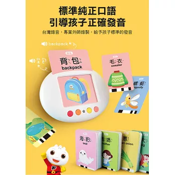 不搭配機器使用時,卡片也可獨立當成識字卡或閃卡學習,從圖片中提升基礎認知、學習說話與發音,全腦開發提升好IQ!