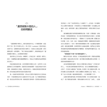 除了上述方法,作者經營至今已超過一年的「時間區塊團隊」,成員從二十多歲的大學生、三四十歲的上班族、職業婦女、藝術家、全職主婦,到五十多歲的企業家,都來自不同領域,他們把一天六區塊時間管理系統融入自身生活之中,找到生活的平衡點,專注在對自己更重要的事。