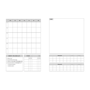 ►WEEKLY PAGE每週四十二區塊計畫表+提醒清單,有助於短期目標實踐與建立慣性。
