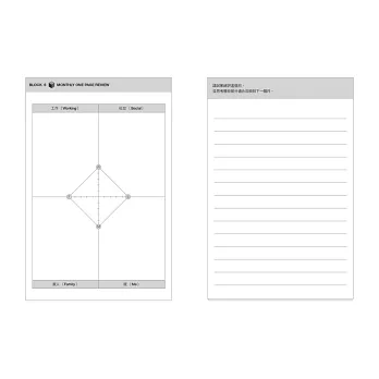 ►MONTHLY ONE PAGE REVIEW 從工作、社交、家人、自己等面向,總評一個月,並思考哪些部分適合反映到下個月。
