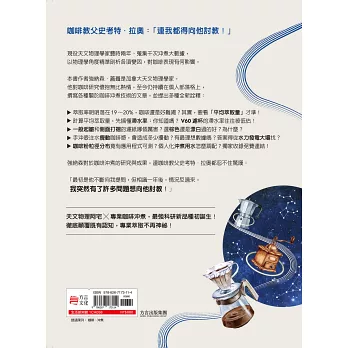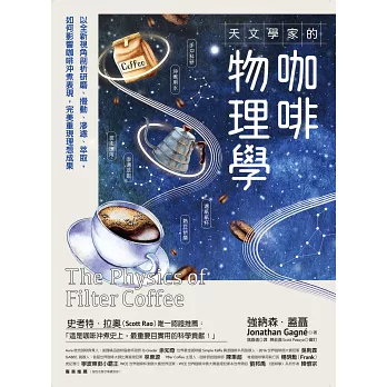 以史考特.拉奧的四本專書為例,從咖啡烘焙、咖啡沖煮、烘豆實作到義式萃取,系列譯者魏嘉儀小姐及審訂者余知奇先生,都已克服了專業術語的挑戰,為其找到(或創造)生動的中譯對應詞彙。若要問這本《天文學家的咖啡物理學》何以能順利且流暢地被翻譯出來,拉奧四本著作所累積的翻譯能量,絕對功不可沒。