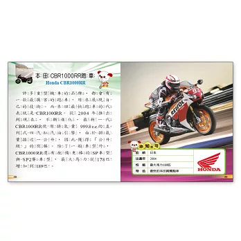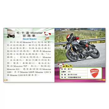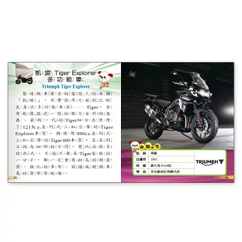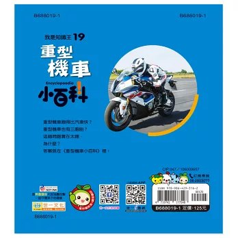 你知道重型機車可以跑得比汽車還快嗎?你知道重型機車也有分不同的功用嗎?不論是在電影裡還是街道上,重型機車都是大家注目的焦點,本書共介紹51款重型機車,包含耳熟能詳的BMW、哈雷等等,究竟重型機車的魅力在哪裡?翻開《 重型機車小百科》就知道了!隨書還附內容QR CODE,可以隨掃隨時聽唷!