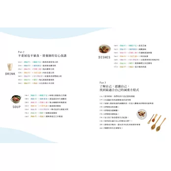 總是愈忙愈胖?會胖是不是自己因為不夠努力?總是陷於比較,斤斤計較於一週要瘦幾公斤,如果變瘦變美,是不是就能更愛自己?每個難瘦的狀態,往往隱藏對生活的失控和匱乏,針對7種不同身心症狀一一排解壓力和情緒,並提供對症減壓食譜,從飲品、湯品到菜品,吃好睡飽自然瘦。