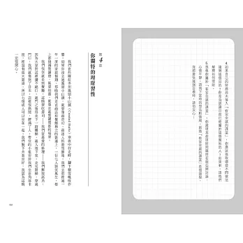 透過一系列不同的角度,瑞秋將帶領你們探索自我。你將瞭解成長方式如何影響理財決定,明白真正的理財恐懼以及如何面對,並且詳細瞭解你花錢和存錢的動機。最重要的是,瑞秋將幫助你運用所學,徹底改造你的財務狀況和人生。等你看完這本書,就有能力改變行為,也終於能在理財方面——人生最教人緊繃的話題——取得真正的進展。這會觸及你的人際關係,改變你的未來。當然,你的銀行帳戶也會有所不同。
