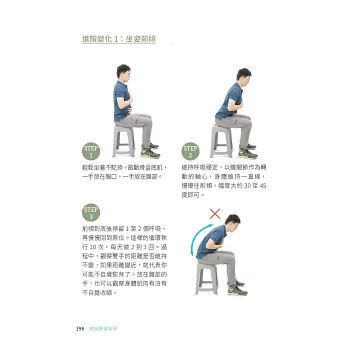 ‧進階變化1:坐姿前傾/進階變化2:跪姿訓練/進階變化3:90-90/進階變化4:90-90椅子版