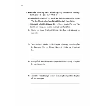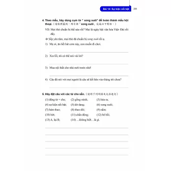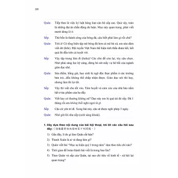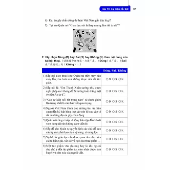 每一課皆有1篇貼近越南實際生活的會話主題及對話內容,透過該主題及內容,可認識越南文化及相關知識。另有針對會話內容的問答題及是非題,讓學習者了解自己對會話內容的掌握程度,並練習用越南語表達想法。