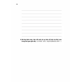 •寫作練習:利用所學的詞彙與語法,除了練習完成句子外,也加強描述自身經驗、發表對某一主題的看法、介紹美食及休閒活動等能力。