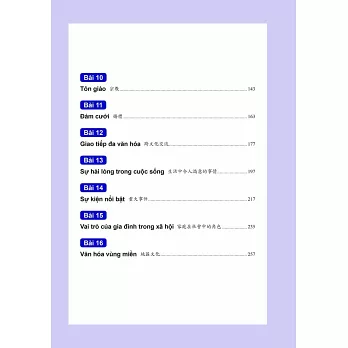 在第12~16課每課的一開始增加「導讀」區塊,是為了讓學習者了解更多越南的基本知識,並鼓勵學習者用越南語的思維開口說越南語。