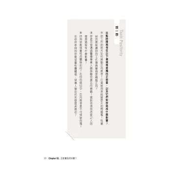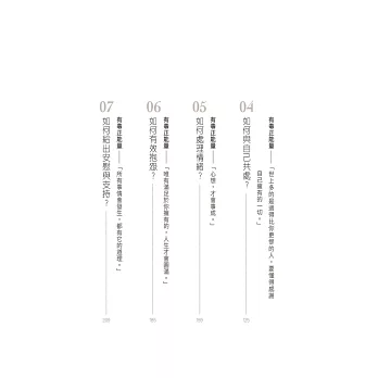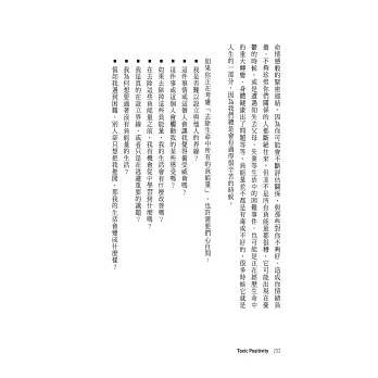 我歸納出所有與正向思考發展相關的歷史,也統整研究結果來協助我們瞭解如何能做得更好、活得更好,就是希望這可以是本容易閱讀又實用的書。全書共分為九個章節,每個章節都會呈現不同的個案故事及其與有毒正能量的關係。如果你有興趣深入瞭解有毒正能量,建議從頭到尾將這本書好好讀過一遍;如果你是為了練習如何面對有毒正能量,直接跳去閱讀有興趣的章節亦無妨。