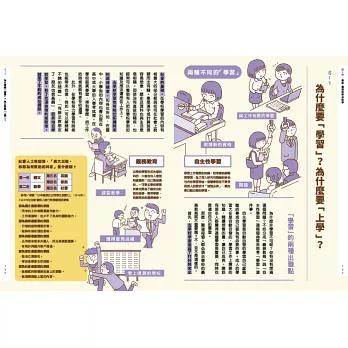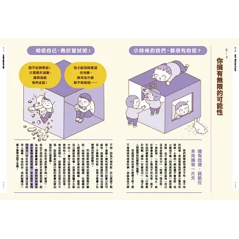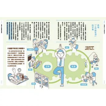 1. 生活化的劇情漫畫與對白──能快速融情境,思考讀書、工作與我們的關係,不畏懼的實現自我價值,重新定義幸福。