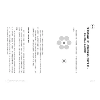 就像書中第一部談到「肥胖是心理狀態的生理結果」。可不是嗎?如果沒能瞭解為什麼會變胖、是不是真的胖,不僅不容易瘦下來,也可能會讓自己在外貌上有了偏差的主觀感受,變成了一個「不喜歡自己」的人,再也沒有比這個更糟的了。