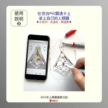 .超值贈品:油性筆紅黑各1枝、人類圖金屬書籤夾4×4cm、2張人類圖PVC霧透卡