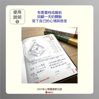 .折口巧思:13公分大折口,印有詳細的日誌使用說明