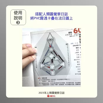 再將霧透卡疊在每一頁的流日圖上,可以清楚看見自己當天被接通了什麼通道,