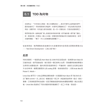 提供思考邏輯的轉折點,本書中的各項軟體開發技能,就是希望讀者能同時開發、測試、與重構,但不犧牲品質。