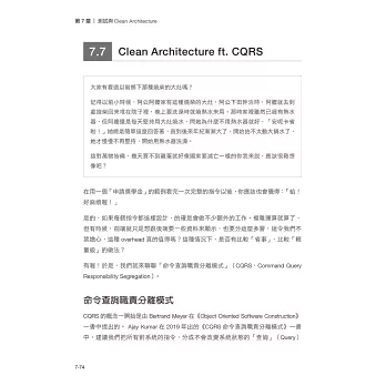 ●綜合 TDD、Clean Architecture、CQRS、GOOS 等模式,佐以實際案例,帶領讀者從需求分析開始,從頭到尾走一趟開發流程。