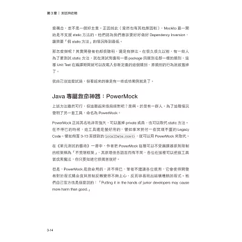 「本書的背景是在敏捷開發的情境下應用自動化測試,對於導入敏捷開發卻遲遲無法落實自動化測試的朋友,極具參考價值。對於單元測試的門外漢,透過本書亦可輕鬆認識單元測試的眾多觀念,補充長期以來所欠缺的單元測試養分。」──── 部落格「搞笑談軟工」板主│Teddy Chen