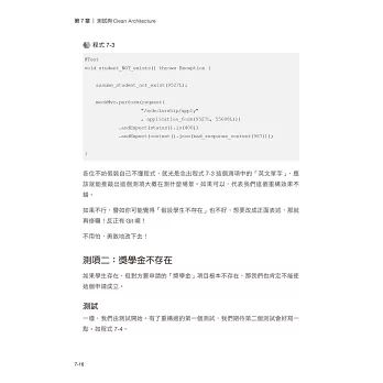 ●在單元測試的保護下,嗅出壞味道並大膽地重構,再善用例外處理增加系統強健度。