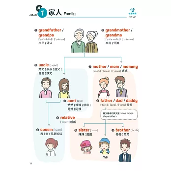 依照生活情境分成9大主題、82個圖解單元,包含食衣住行、學校生活、休閒娛樂、節慶文化等等各種面向,讓孩子以最生活化的方式學會基礎的2000個單字。