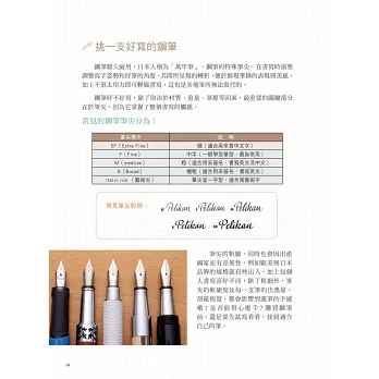 介紹鋼筆的筆尖、保養方式,即使是初學者,也能盡情享受書寫的樂趣。