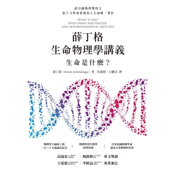 這個問題有著無數多個可能的解答,量子物理學的奠基者之一薛丁格也曾經嘗試著要回答這個大哉問。他從古典物理出發嘗試理解生物的大小為何會有限制,遺傳為何可行,組成生命的有機物又是如何一起運作。在一系列的辯證中,薛丁格發現儘管量子力學剛剛萌芽,但是可以作為這一系列生命現象的良好解釋。這個新的角度也為未來發現DNA結構立下了重要的理論基礎。本書也收錄薛丁格在理解生命時做的另一個嘗試:用科學理解意識是什麼。本書最後是薛丁格於生命尾聲寫下的一篇自傳,整理了他三十餘年的科學生涯與成長期間受到的深層影響,是了解這位物理學大師的起點。