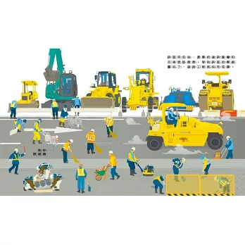 透過道路施工的過程,介紹7種工程車如何運作,如何完成階段任務,了解工程人員的工作。