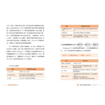 之後我把這個改變人生命運及提高執行力的方法系統整理出來,變成一個大家可以學習的「人生財富翻轉公式」,也曾應邀在〈今周刊〉實體課程中首次公開分享給大家,許多學員聽完後也覺得方法簡單及有效,而因為很多的粉絲沒上到實體課,大家敲碗希望我可以分享出來, 這個人生財富翻轉的公式,是老師從小到大都在用的方式,他陪伴我從高職生考上大學,完成博士學位、出書、環遊世界……,我很愛這個方法,因為這個方法徹底改變我的心志、我的人生、我的命運、我的財富、我的未來。