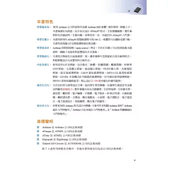 本書提供實作專題內容包含霹靂燈、全彩呼吸燈、全彩廣告燈、調光燈、觸控燈、電子輪盤、字幕機、電子碼表、60 秒計時器、自動抽號機、觸控調光燈、音樂盒、數位電壓表、小夜燈、電子測距計、電子溫度計、電子溫溼度計、智能檯燈、數位電子時鐘等。