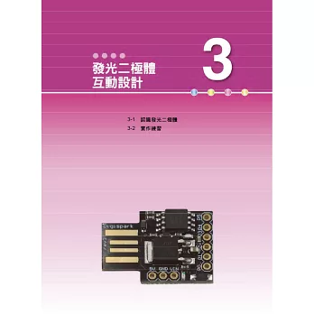 本書強調在玩創意,使用Arduino公司提供的免費Arduino IDE軟體,搭配ATtiny85開發板,所有的實作範例皆有詳細說明,易學易用,可以隨興趣及喜好,快速、輕鬆組裝具有創意的「互動設計」應用電路。