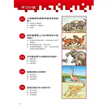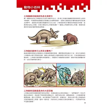 設有「動物小百科」單元,介紹額角和頭盾不能用來攻擊的三角龍、走路同手同腳的風神翼龍、巨大滄龍的祖先是小型蜥蜴等基本常識,以及吃飽飯就會吐食丸的雕鴞、不是鯨魚而是海豚的虎鯨、擁有無敵鐵甲的鱗角腹足蝸牛等超炫常識,讓小朋友有系統的學習。
