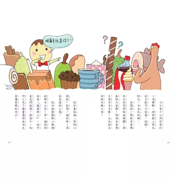 以點心食物為主角,有趣詼諧的文字敘述,色彩豐富的可愛畫風,讓孩子邊看邊笑,一篇接著一篇看下去。莫名的看完一整本,孩子很有成就感。
