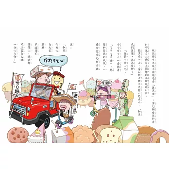 差點被學校拒收、老是被大家喊「滾!」的神祕點心人,幸好有小小布丁人這個好朋友的支持和鼓勵,從此成了學校最熱門的人物……香蕉弟弟哭著不要皮,卻在果汁機老師的協助下,意外發現「皮」並不是沒有好處……熱心助人的蜂蜜少女和差點被砍頭的蜜蜂先生,兩人之間到底是什麼關係?為什麼讓所有的點心人既肯定又感動?花枝學姊一天到晚打扮得漂漂亮亮,她真的不認真學習、肚子裡沒有半點墨水嗎?