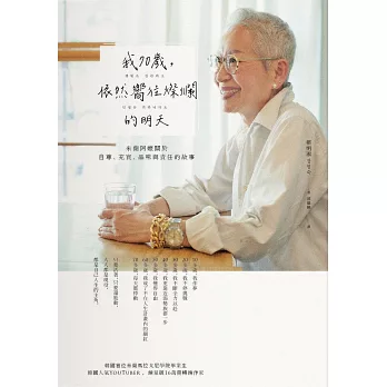 在《我70歲,依然嚮往燦爛的明天》這本書中,她大方分享過往經歷淬鍊出的人生智慧,以四個主題「自尊、充實、品味、責任」和讀者談如何學習尊重並擁抱真實的自己、對生活持續抱有熱情、透過改變對物質及社會價值的態度讓自己活得舒服體面,並成為一位富同理心、有能力擁抱他人並值得敬重的人。