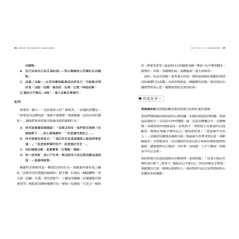 因此,書中的案例是僅供參考。大家閱讀的時候,還是要以每個主題的描述為主,來判斷自己是否有類似的認同困境,並且找出最符合自己情況的「原型認同」。