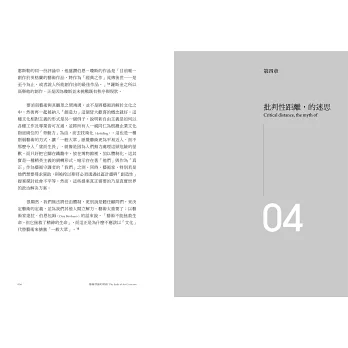 為了說明我的觀點,我在文中大量借鑒我教授藝術學生的經驗以及發表在《藝術月刊》(Art Monthly)上的資料,《藝術月刊》是一本深具國際視野的英國期刊,我可以如此自信地斷言,是因為作為這本雜誌的撰稿人與編輯,我與這本雜誌已有超過三十年的合作關係;但在此同時,我也希望能藉此凸顯出從往至今,在辨認以及參與新興藝術概念的形成及傳播上,雜誌持續扮演的重要角色——這可以說是藝術評論的主要「終點」(目標)之一。我所引用的大多為最近發表的資料,因為沒有比如此大量與藝術相關的高品質寫作更能充分展現藝術評論始終不輟的活力與適切性。