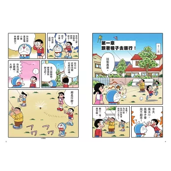 翻開書,哆拉A夢與好朋友們以繽紛色彩歡迎讀者,在大家熟悉的角色帶領下,以全彩視覺開啟輕鬆閱讀科學的旅程。