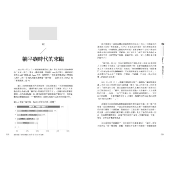 接著是探討被中共當局下令封鎖言論的「躺平族」,以及在 1990 年代末期興 起的「財務自由、提早退休」運動(FIRE 運動),存一億日圓、躺平族及 FIRE 運 動的共通點,並非投資理財,而是以力行儉約生活為第一優先,以「4%法則」為 生活準則,就可能在 40 歲前達到「被動收入高於生活支出」的境界,那麼,「FIRE 運動」在台灣行得通嗎?