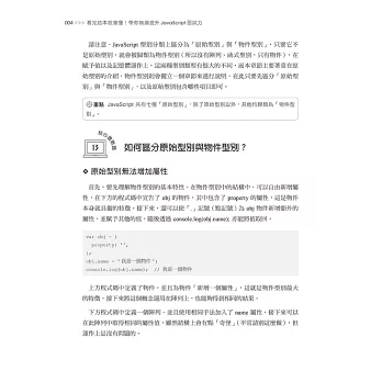 在本書中,包含許多經典的JavaScript知識點及問題,這些知識點是屬於容易被忽略的核心知識,掌握這些知識內容,將有助於求職中應對各類陷阱題,以及在複雜的JavaScript開發時,更容易找出相對應的錯誤;除此之外,目前主流的ECMAScript 6以上的語法當然也不會錯過,本書會介紹這些語法與ES5觀念上的不同,以及可能遇到的問題點。