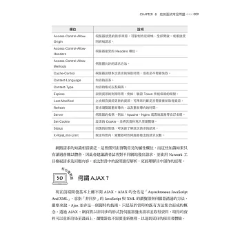 當然,作者非常清楚前端在求職的過程絕對不是只有被問到JavaScript的問題,而且並非所有的面試官都是前端開發者,所以除了書中的七大JavaScript章節以外,另外補充「第八章前端面試常見問題」,此章節加入了前端面試常見的延伸問題,例如:MVC、SPA、SSR等各種專有名詞解釋,以及各種網路的常見問題。