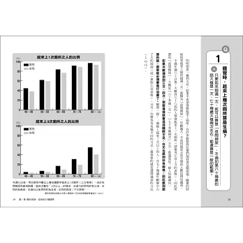 比起一般疾病、醫療書籍,本書內容基礎來自於〈日本夜間頻尿診療指導手冊〉──歷經11年修訂,並集結日本10位醫療泌尿專科名醫共同監修而成,針對臨床、診間最多人發生的困擾以及最常詢問的104個問題,透過QA問答的方式,以淺白、生活化的詞彙將深奧的泌尿、腎臟保健等知識一一羅列,不僅一解大家對於頻尿的困惑,更確實引導民眾獲得正確的醫療知識,進一步了解從日常照護改善及預防頻尿的方式。
