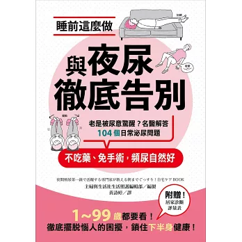 儘管面對疾病,大多數人的認知都是──「身體問題一定要看醫生」,然而在醫療資源緊縮同時相對增加染疫風險的今日,已有愈來愈多人傾向尋求自我處理,而比起聽信偏方、買藥吃的方式,本書當中介紹的是「在連絡醫生之前必須知道的事情」以及「應當要做的事情」,更有詳細自我檢查評量方式,並收錄最常接觸夜間頻尿治療前線的患者問題,以及那些活躍於前線的諸位專業醫師的最佳解答。儘管未必保證一次治癒所有病根,但書中誠懇而仔細回答的內容,必能解決大家日常生活中對於夜間頻尿問題的各種煩惱。