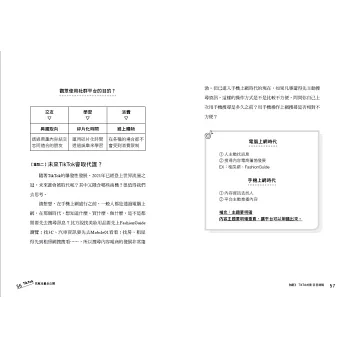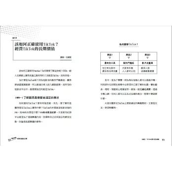 ▶這本《TikTok百萬流量全公開》不只是一本只講 TikTok 操作說明,而是帶你先思考你的定位,才有可能做好完整的內容規劃,看完才發現真不是帥就夠的。――邱煜庭