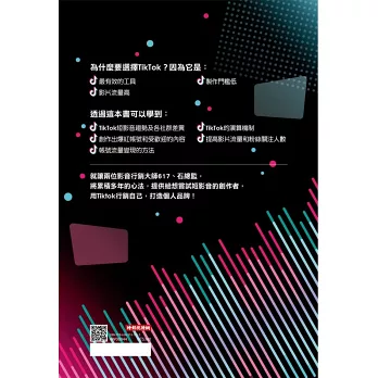 ▶短影音擁有內容聚焦、節奏明快、高頻曝光等特性,品牌管理者開始積極投入資源在短影音製作與推廣,搶搭這股全球熱潮。《TikTok百萬流量全公開》協助你快速瞭解短影音趨勢並剖析 TikTok 背後演算機制,帶著你打造具有競爭力的短影音,推薦大家閱讀!――邱彥錡