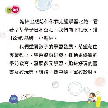 「小翰林」是翰林出版學前教育品牌,擁有專業研發團隊,為孩子打造「帶得走的能力」教玩具,面對資訊爆炸時代,除了好玩趣味,也能培養孩子擁有多元思維、自主探索及問題解決能力,我們也重視產品品質,符合安全規範,讓孩子玩得開心,家長也放心!